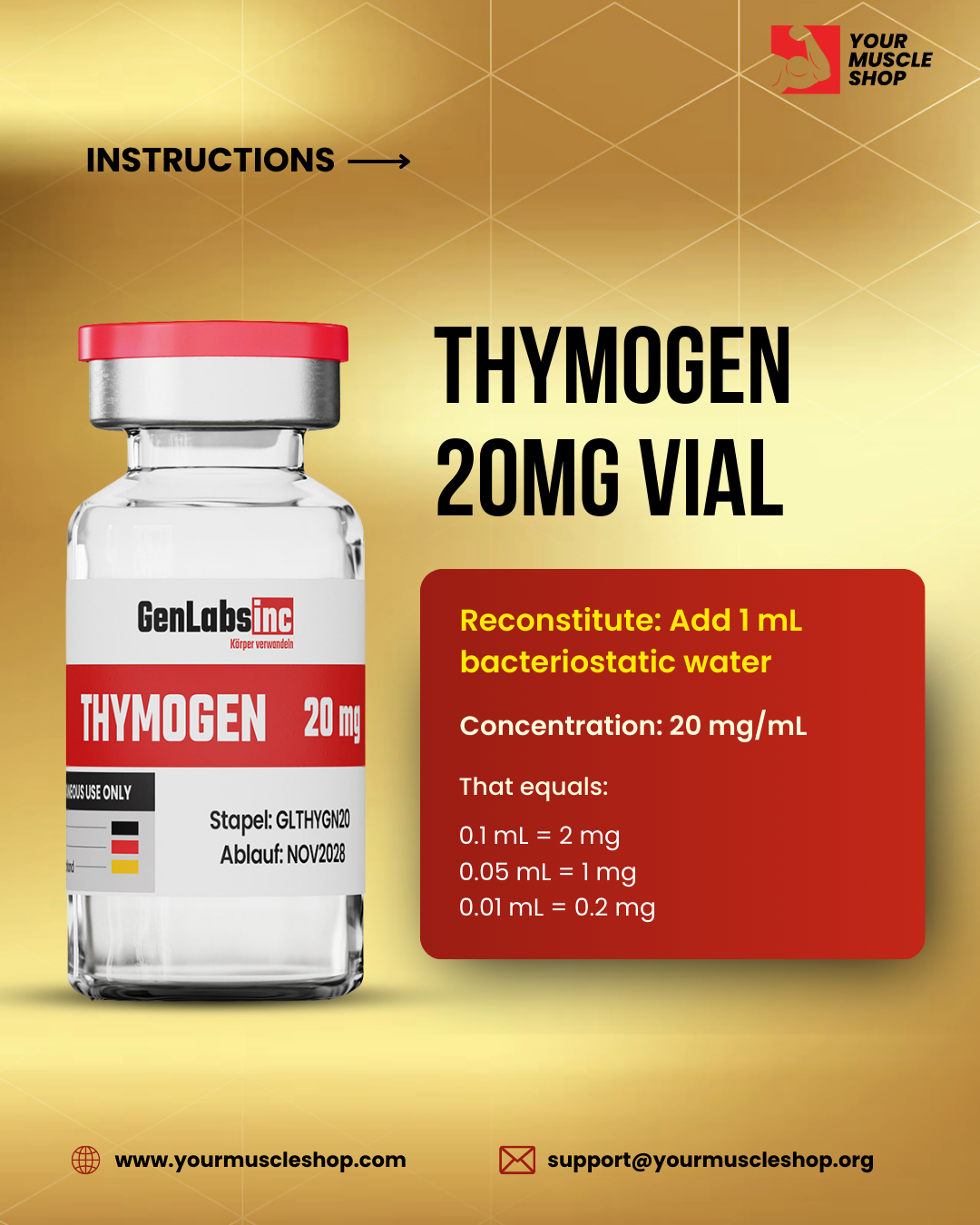 Thymogen 20mg Vial – (with Bacteriostatic Water) – Genlabs